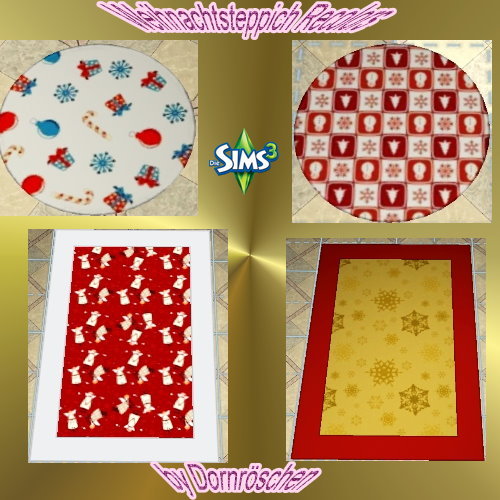 By Dornröschen Was wird benötigt? Sims3 Ersteller Dornröschen Costum Content enthalten? nein Dateien Weihnachtteppiche 1--4.rar 999,29 kB (688 Downloads)
