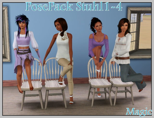 mit Poselist Was wird benötigt? Sims3 Ersteller Magic Costum Content enthalten? nein Dateien PosepackStuhl1-4.rar 119,51 kB (714 Downloads)