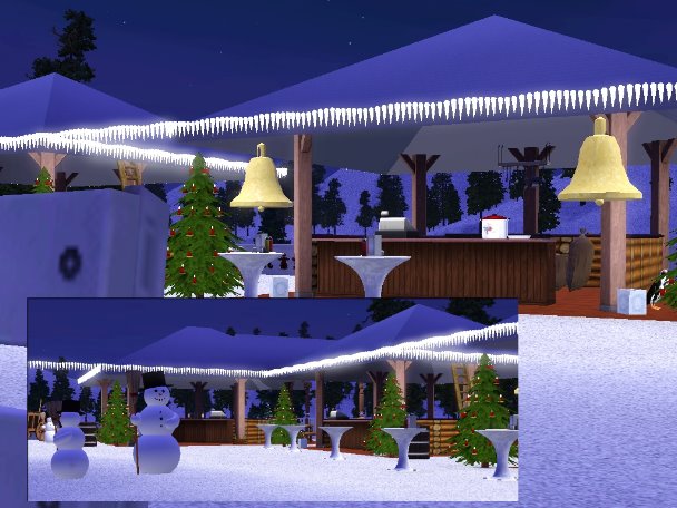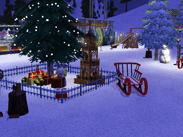 Die Weihnachtshütten sind voll Funktionstüchtig, also es können dort Sachen erworben werden wie Essen, Nektar, Bücher, Relikte und solche Dinge. Jede Bude Verkauft was anderes. Auch gibt es einen Rodelberg.