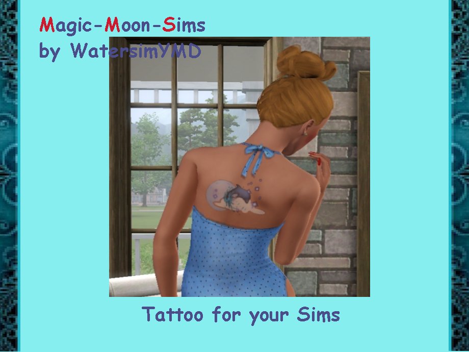 Ein neues Tattoo für eure Sims.For Ambitions Was wird benötigt? Sims3 Ersteller watersimYMD Costum Content enthalten? - Dateien ws_DolphinMagicMoon_MMS.Sims3Pack 434,31 kB (615 Downloads)
