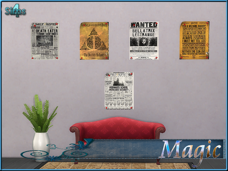 5 Poster in einer Dateiby Magic Was wird benötigt? Sims4 Ersteller Magic Costum Content enthalten? nein Dateien PostersetHP-Magic-1.zip 1,02 MB (470 Downloads)