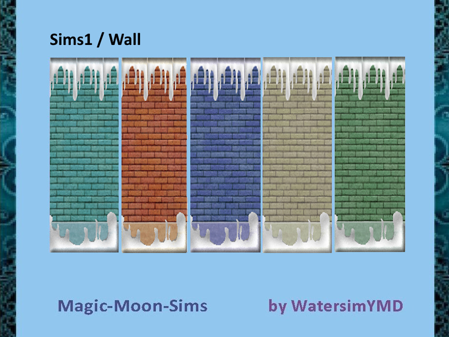 Wall snowbrick set in 5 colors. Was wird benötigt? Sims1 Ersteller watersimYMD Costum Content enthalten? nein Dateien ws25_snowBrickSet_mms.zip 550,05 kB (273 Downloads)