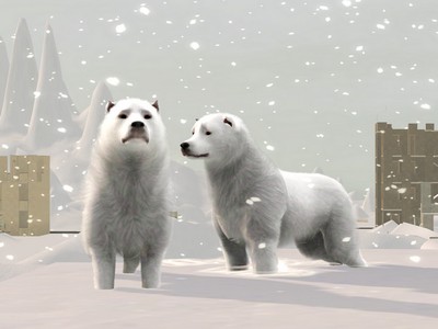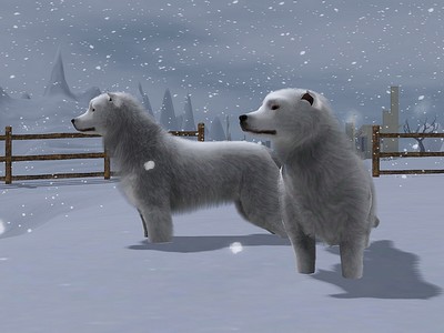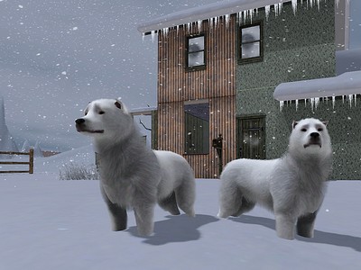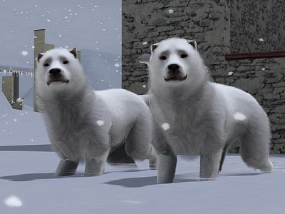 Das Sims 3 Eishund-Paar Aiz und Aiza passen sehr gut in Eis- und Winterwelten oder zum Aufbau einer Eishund-Zucht. cc-frei