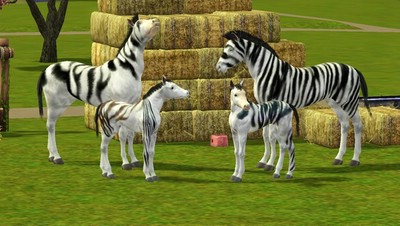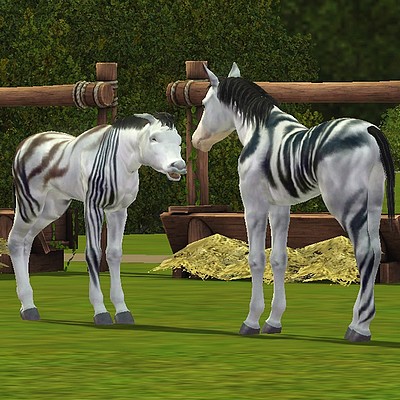 Sims 3 „born in game“: Der Zuchtversuch mit zwei erstellten Zebra-Pferden verlief erfolgreich. Die beiden süssen Fohlen Branca und Bronco kamen dabei heraus.