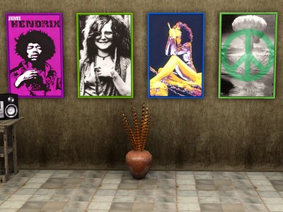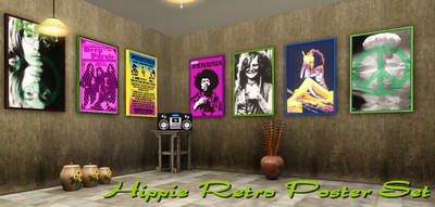 Sieben Retro-Poster (EA recolor) 60er Style für Hippie-Sim Haushalte (Wohn-, Schlaf- und Kinderzimmer). EA recolor Poster