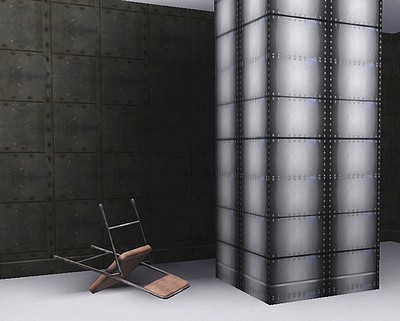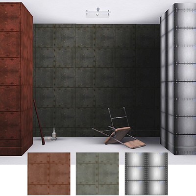 Kleines Musterset mit 3 Texturen von Metallplatten für Verkleidung von Wänden und Objekten für Die Sims 3. Alte Eisenplatten, rostige Eisenplatten und neue Stahlplatten.