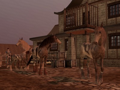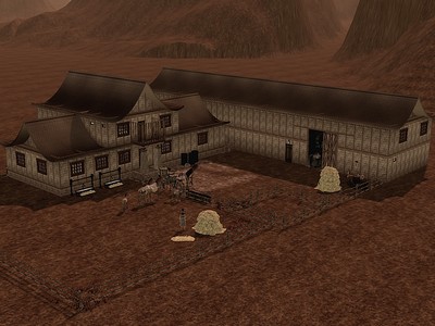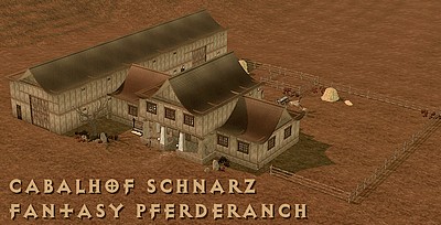 Wohngrundstück 50 x 50 mit Wohnhaus, Stall und Pferdekoppel sowie Bewohnern 2 Sims (Bocktan und Danja Schnartz), 5 erwachsenen Cabals und 2 Fohlen.