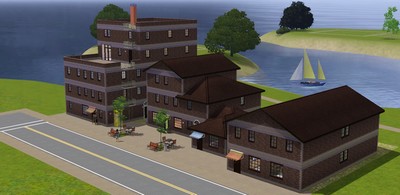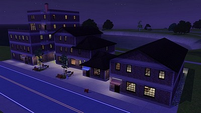 Die alten Backsteinhäuser beherbergen eine gute Auswahl Freizeitmöglichkeiten für Sims wie Fitness-Studio, Tanzsaal, Kneipe mit Internetcafe, Bibliothek und Hobbyräume auf Gemeinschaftsgrundstück. Die oberen Etagen sind leer und ausbaubar, kann auch als Wohnhaus umgewandelt werden.