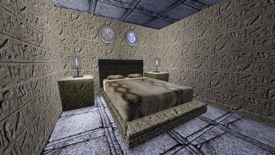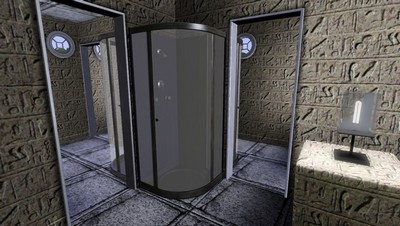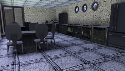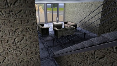 Zwei dieser Salons befinden sich bereits im linken und rechten Eingangsbereich. Im Duschtrakt können bis zu 4 Sims gleichzeitig duschen, ohne sich gegenseitig zu stören. Küche und Speisesaal sind voll ausgestattet und mehrere Sims können gleichzeitig Speisen zubereiten oder essen. Neben dem einzigen Zimmer mit Dopelbett gibt es noch einen kleinen Schlafraum für 2 Sims und zwei grössere für bis zu 6 Sims. Eine Treppe führt vom Salon in die obere Etagen