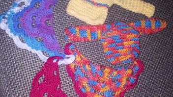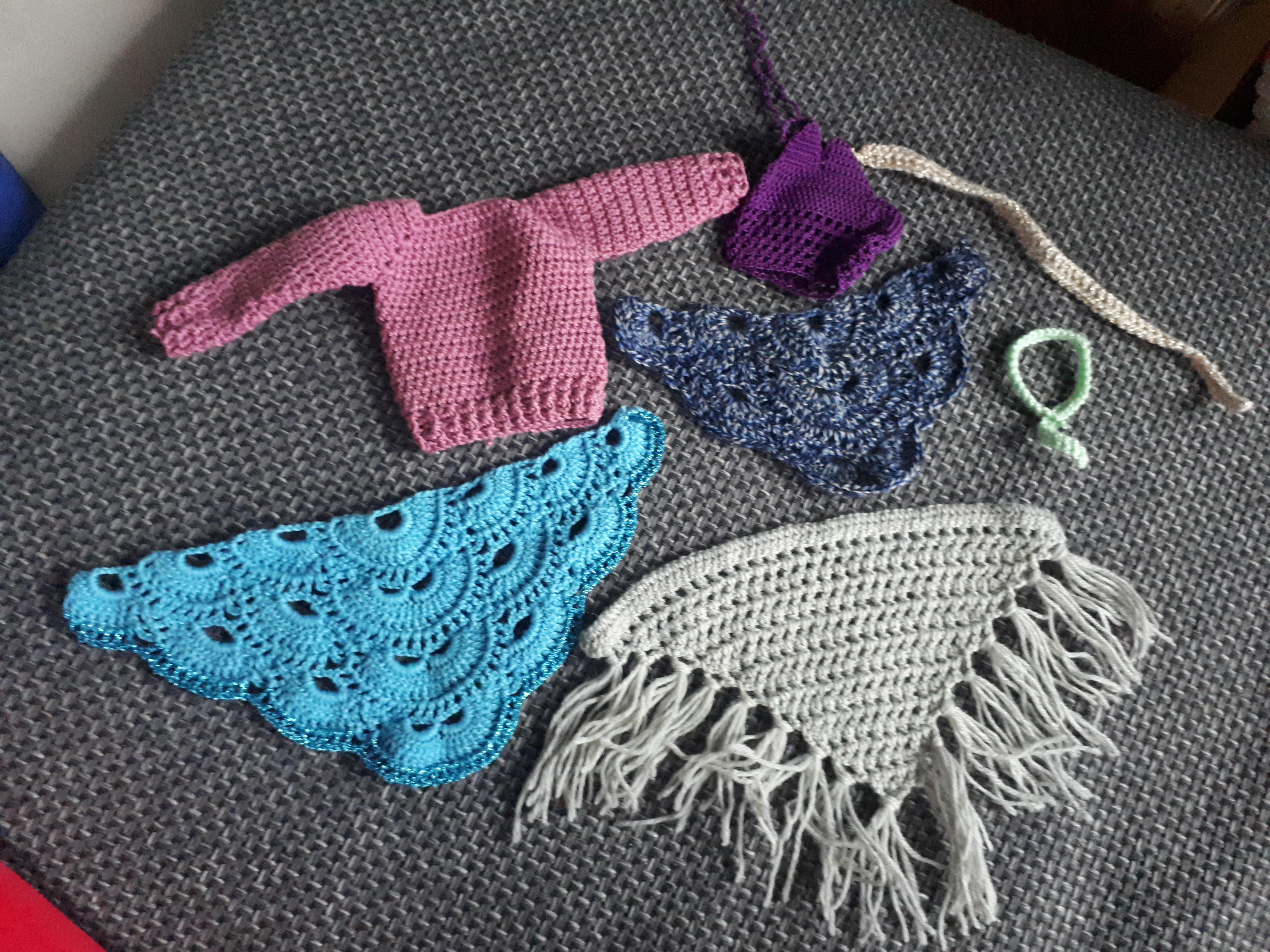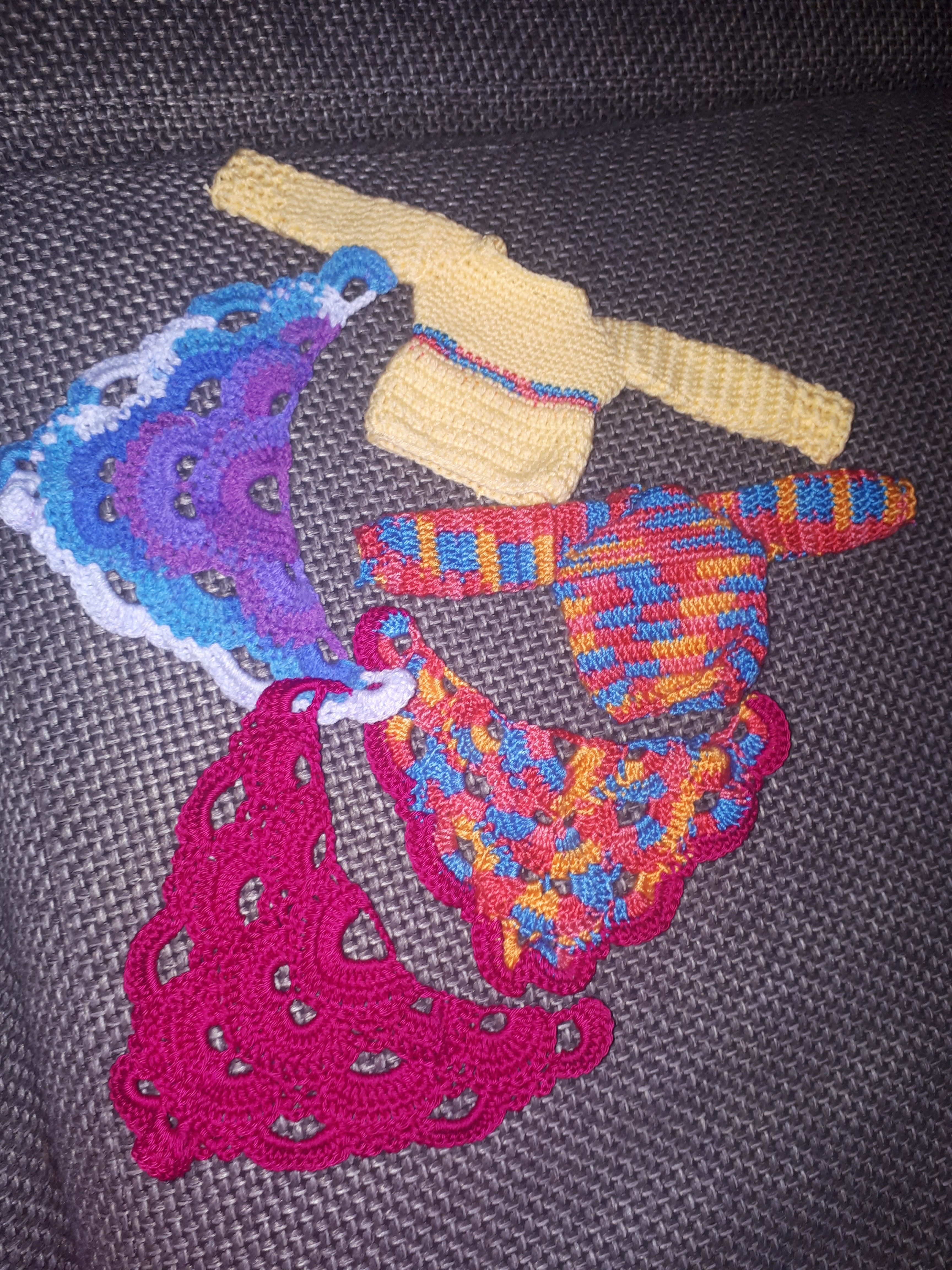 bin schon wieder am häckeln. Habe viele 3ecks tücher für die Puppis die letzten tage verkauft. Deswegen muss nachschub her hihi