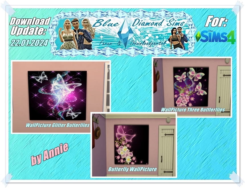 WallPicture Glitter Butterflies DOWNLOAD HERE: https://blue-diamondsimsforum.…ture-glitter-butterflies/