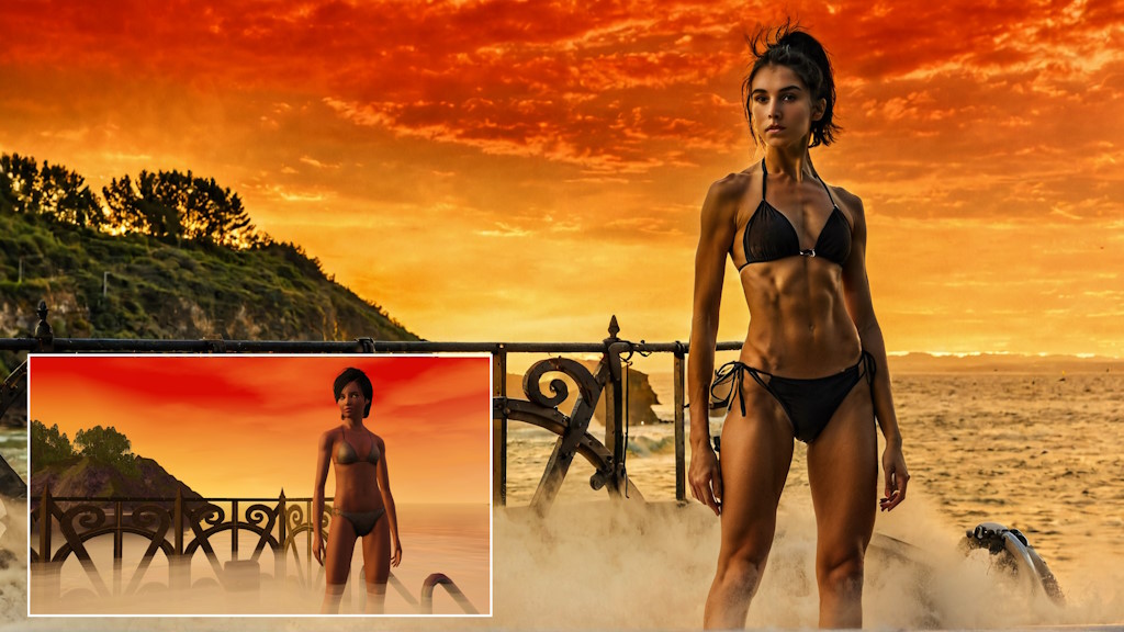 Hier hab ich vorerst leider nur ein paar Bilder von aus der Story entnommenen Screenshots umgewandelt zu realistischeren KI Bildern.