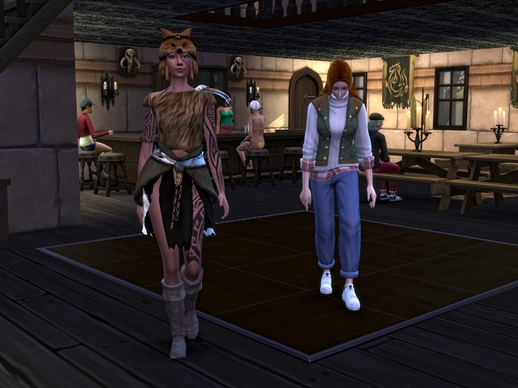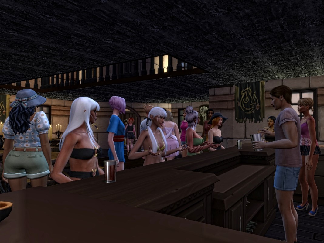 Das Kneipen-Video ist eigentlich spontan entstanden und hat nicht einmal eine Handlung. Wollte einfach mal aus einer festen Einstellung über ein paar Sims-Stunden sehen, was so alles im Raum passiert, wer so alles kommt und was die so alles von sich aus veranstalten.