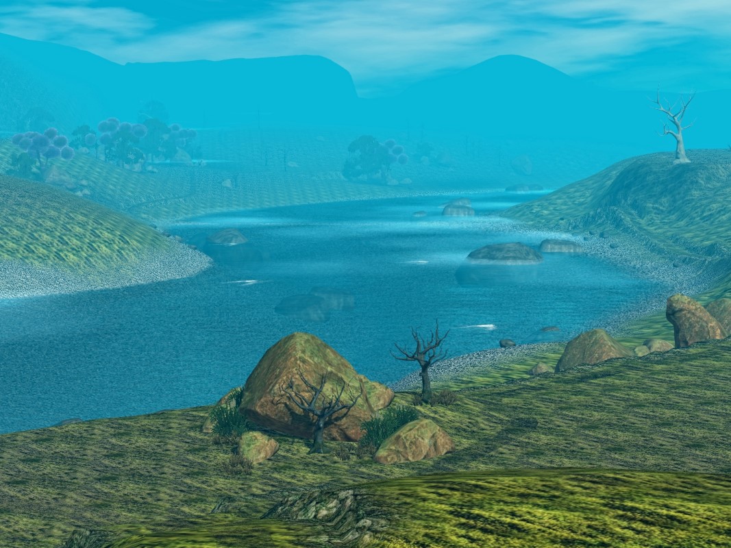 Eine Furt ist zur Flussüberquerung nutzbar und ein Weg führt auch hinter die Berge an die gegenüberliegende Küste, wo noch Platz für neue Grundstücke wäre.