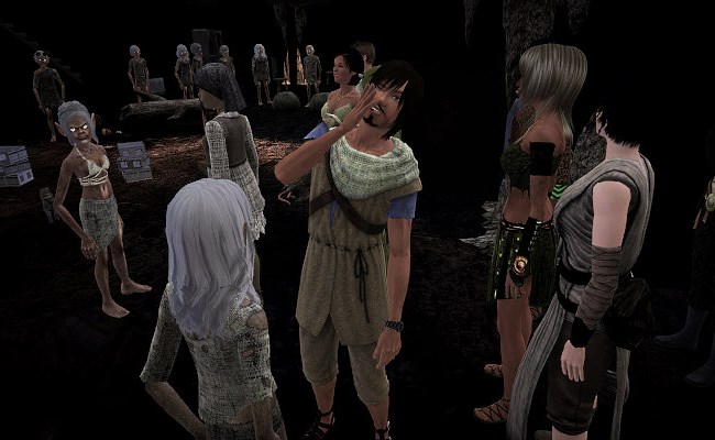 Die Gruppe hat nun die Behausung einer Sippe von Bewohnern erreicht. Nun gilt es, sich zu verständigen und nach dem Weg zu fragen, aber das gestaltet sich doch etwas schwieriger als gedacht. Die Unterweltbewohner wissen nichts von der Oberfläche, wie ihnen die erklären?
