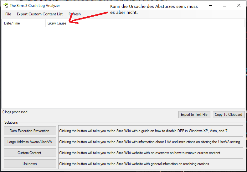 Es gibt auch das Programm "The Sims 3 Crash Log Analizer" (TS3CLA).