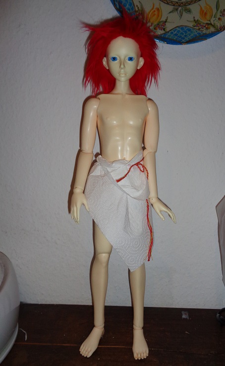 Es ist jemand Neues eingezogen. Weiß nicht ob ihr ihn sehen wollt, denn er ist keine Minifee. Er ist ein Großer. Eigentlich wollte ich ja nur noch Leute kaufen die schon in der Geschichte verplant sind, aber er war so günstig und vor allem: er hat Ohrlöcher. Sieht man auf dem Foto nur nicht. Das wollte ich so gerne mal ausprobieren, hab mich aber nicht getraut meinen welche zu machen. Über ihn weiß ich noch gar nichts. Bin nicht mal sicher ob er die Haare und Augen behalten wird...